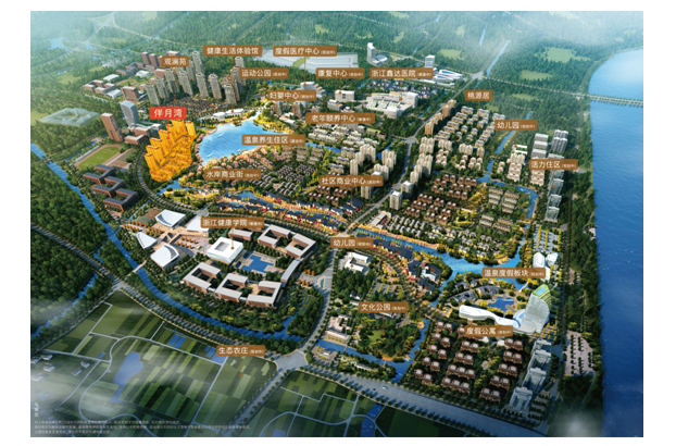 由湖州鑫远投资有限公司投资建设运营的鑫远•太湖健康城,项目占地约2000亩,总建筑面积200万平米,总投资超过200亿元。项目以综合医院为核心驱动,以太湖旅游度假区丰富的旅游、度假、休闲资源为依托,打造集医疗服务、养生养老、温泉度假、文化旅游、健康教育于一体的中国全龄复合型大健康产业城。